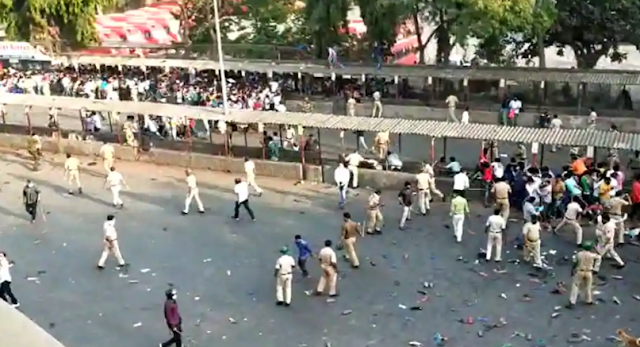 നാട്ടിലേക്കു തിരിച്ചുപോകാന് വഴിയൊരുക്കണമെന്നാവശ്യപ്പെട്ടാണ് യുപിയിലും ബിഹാറിലും നിന്നുള്ള കുടിയേറ്റ തൊഴിലാളികള് വൈകുന്നേരത്തോടെ തെരുവിലിറങ്ങിയത്.Another #TablighiJamatVirus moment. This time in Bandra, right in the backyard of the Best CM In The World, @OfficeofUT pic.twitter.com/vEYEPLPjok— Shefali Vaidya. (@ShefVaidya) April 14, 2020